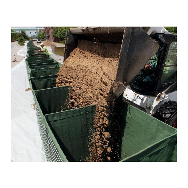 Восстанавливаемая единица с геотекстильной подкладкой для общего использования в качестве земляного барьера. Единицы подходят для заполнения землей, песком, гравием, щебнем и другими сыпучими материалами. Единица выполняет широкий спектр задач, включая строительство защитных стен и барьеров.